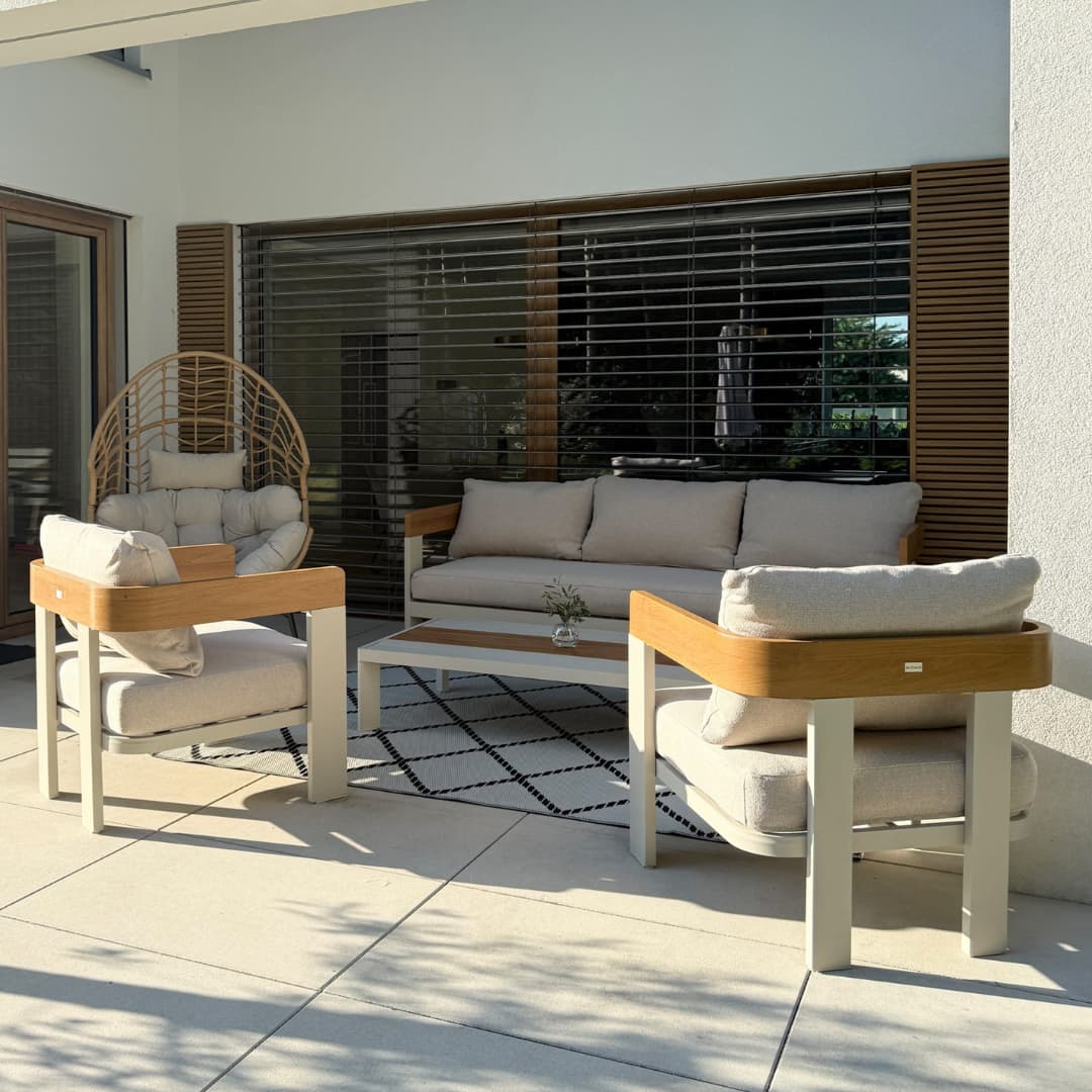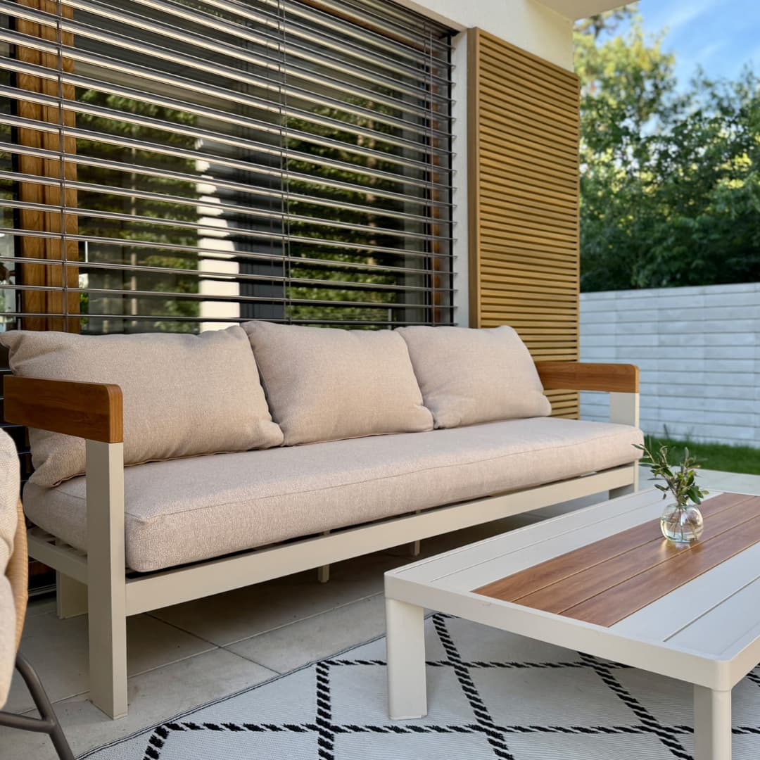 - Lehkost a pevnost v jednom – hliníkové profily zvládnou vysoké zatížení, ale kompletní lounge set přenesete jedinou rukou. Ideální, když často přestavujete terasu nebo uklízíte na zimu.